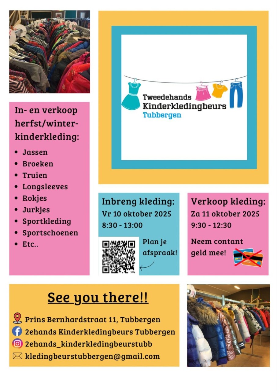 Meer info: Via de Facebookpagina (2ehands Kinderkledingbeurs Tubbergen) en instagrampagina (@2ehands_kinderkledingbeurstubb).